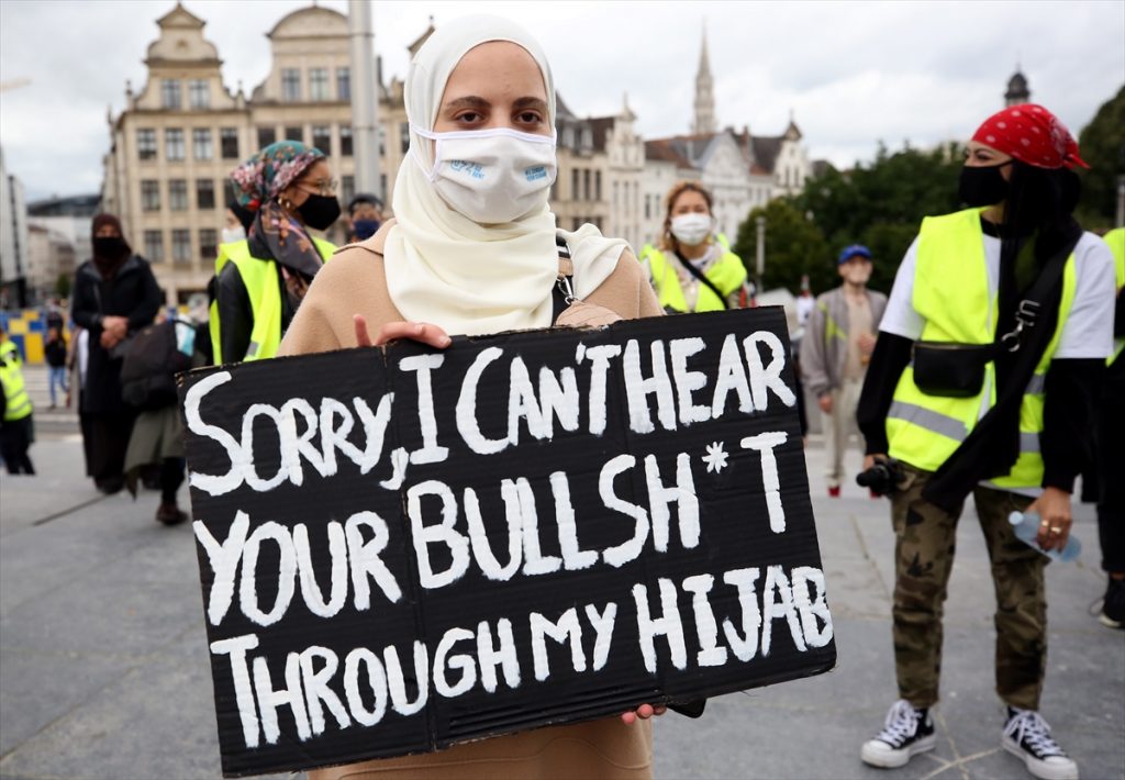 Protestocuların okuduğu bildiride, Belçika‘da Müslüman kadınların dinî inançlarından ötürü ayrımcılığa uğradığına işaret edildi. Belçika‘daki yasalar ve mevzuatlar hazırlanırken Müslüman kadınların önceliklerinin de dikkate alınması talep edilen bildiride, Belçika’da Müslümanlara daha anlayışlı davranılması gerektiği ifade edildi.